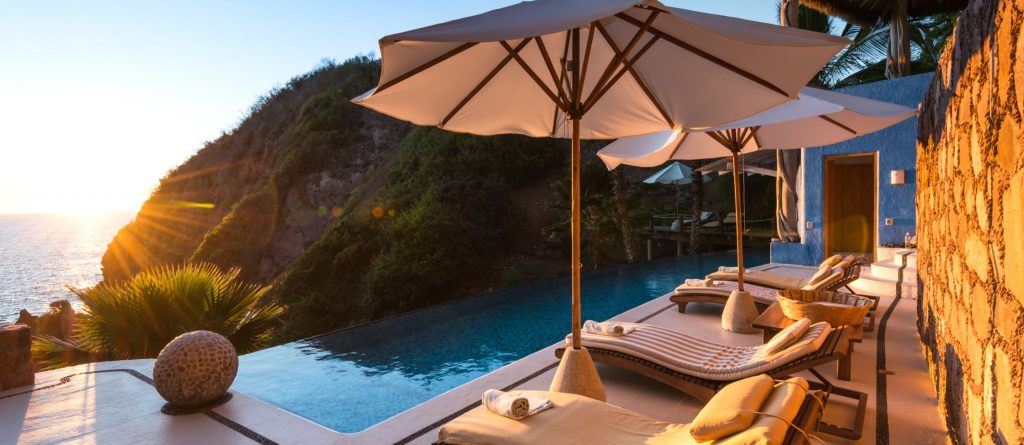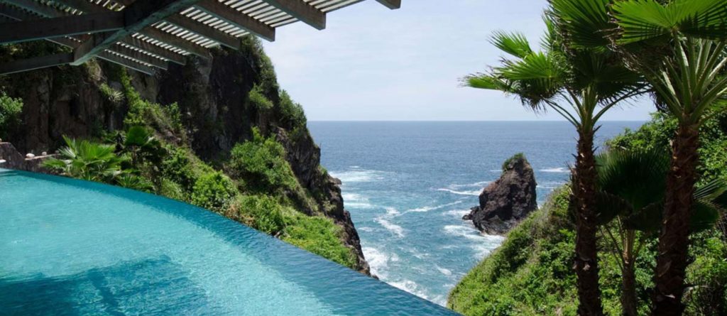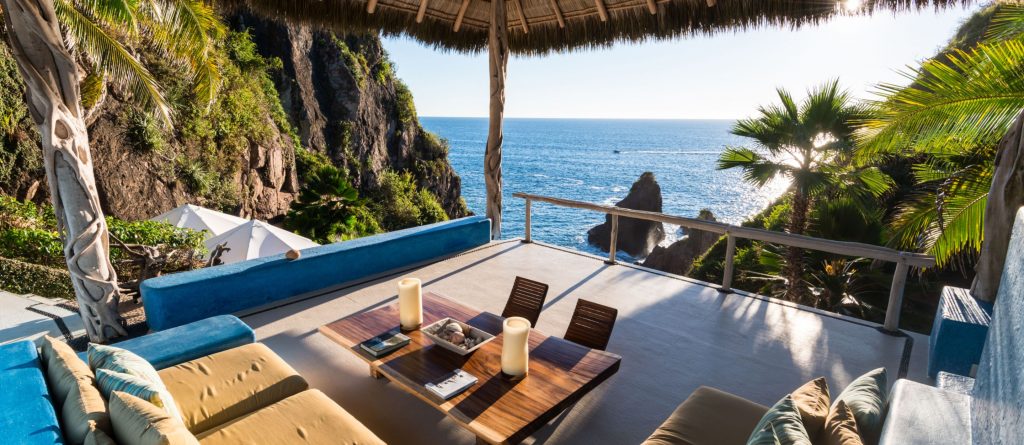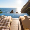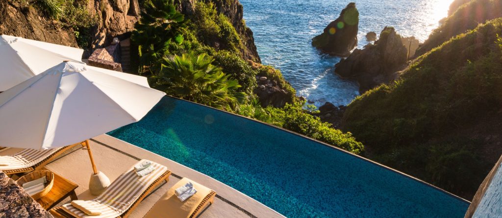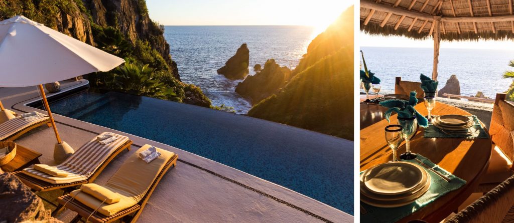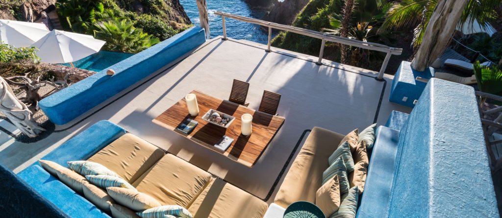 El Carayes Amor features a private infinity pool that looks like it spills into the sea directly below it, panoramic ocean views, multi-tiered rooftop terraces perfect for sun or star bathing and a private grotto.