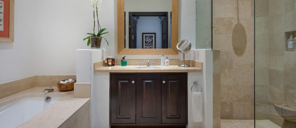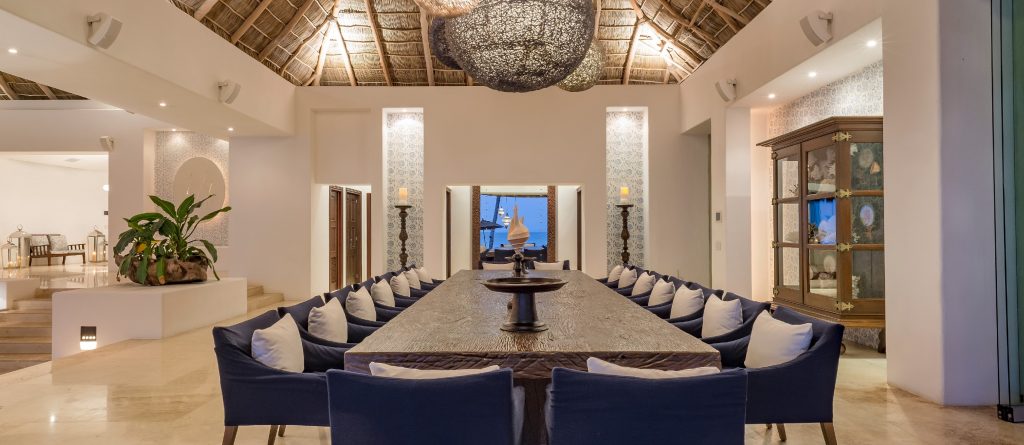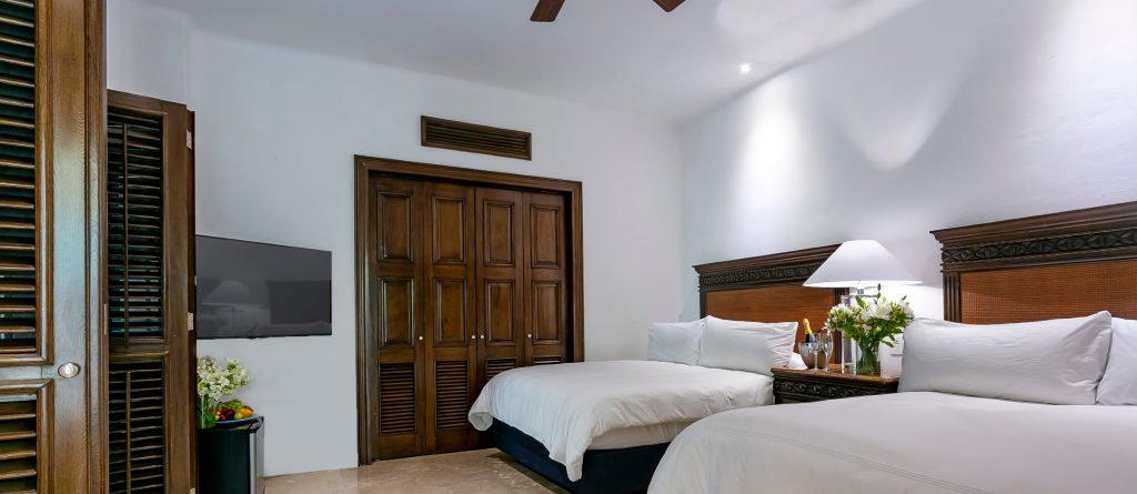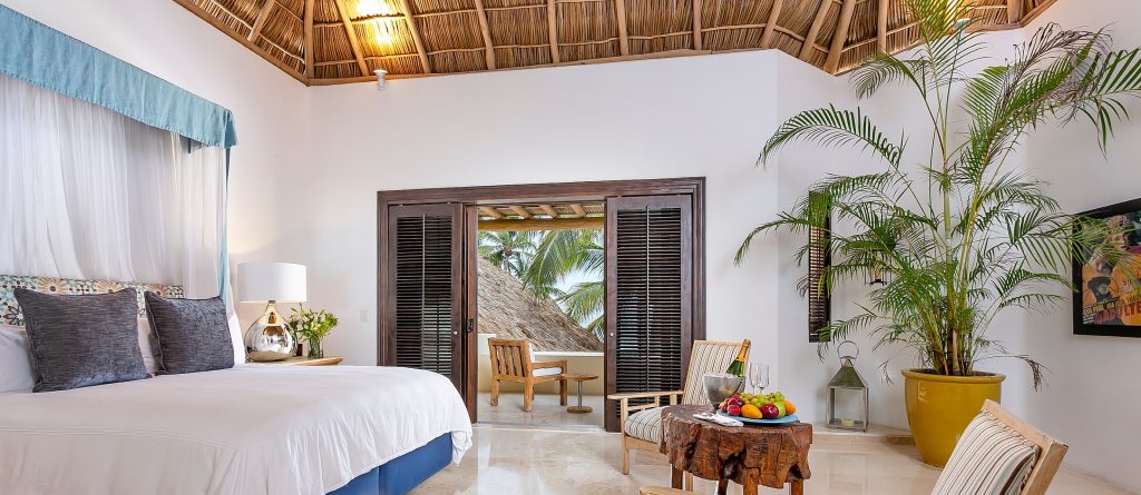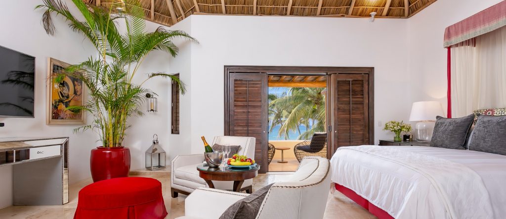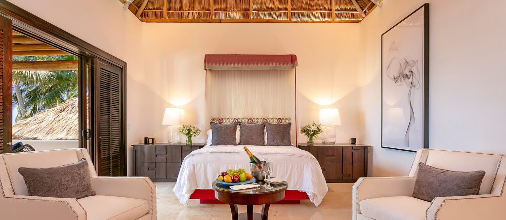 All master suites include a King-size bed, Palapa Roof, en-suite bathroom with shower and tub, Air conditioning, English Language HD 4K Satellite TV, Apple TV with Airplay and Netflix, DVD player, iPhone dock, Separate sound system with Bluetooth audio, High-Speed Wi-Fi access, USB charging port, Electronic Safe, Mini-bar, Refrigerator, Oceanfront.