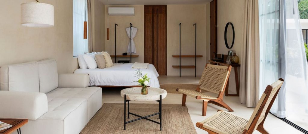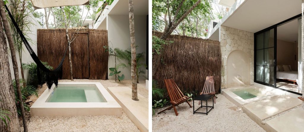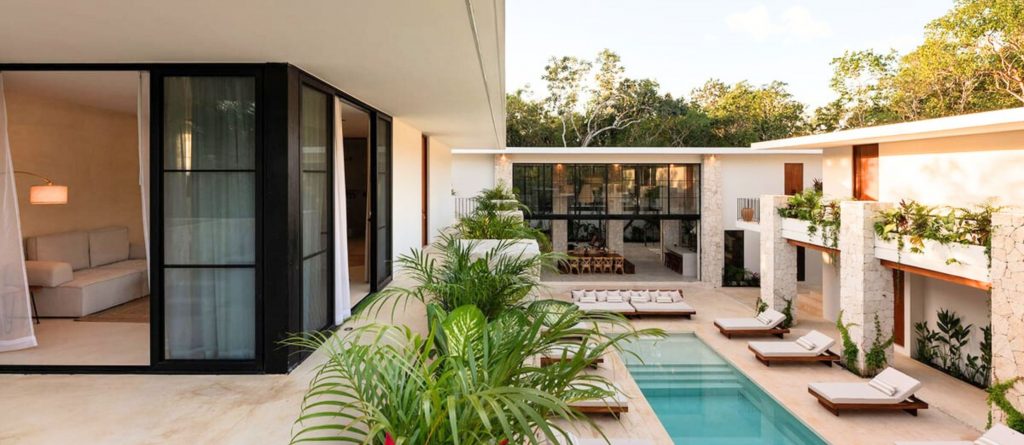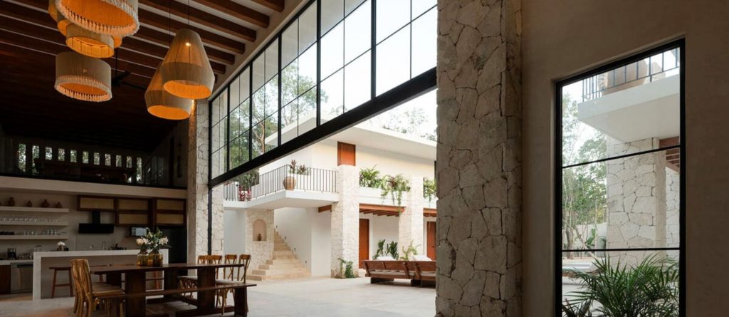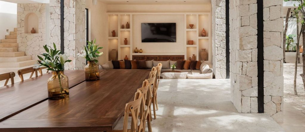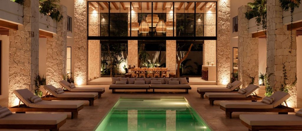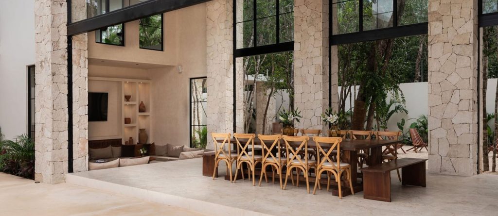 Welcome to Hacienda Tulum, a luxurious oasis nestled in the heart of Tulum’s vibrant jungle. This expansive villa is more than a retreat; it’s a sanctuary where love, passion, and exquisite design come together to create an unforgettable experience for those seeking to create lasting memories with their loved ones. With three distinct buildings arranged in a harmonious U-shape, Hacienda Tulum flawlessly marries traditional charm with modern elegance, featuring handpicked minimalist décor, wooden beams, stone pillars, and the iconic chukum finish that epitomises Tulum’s architectural heritage.