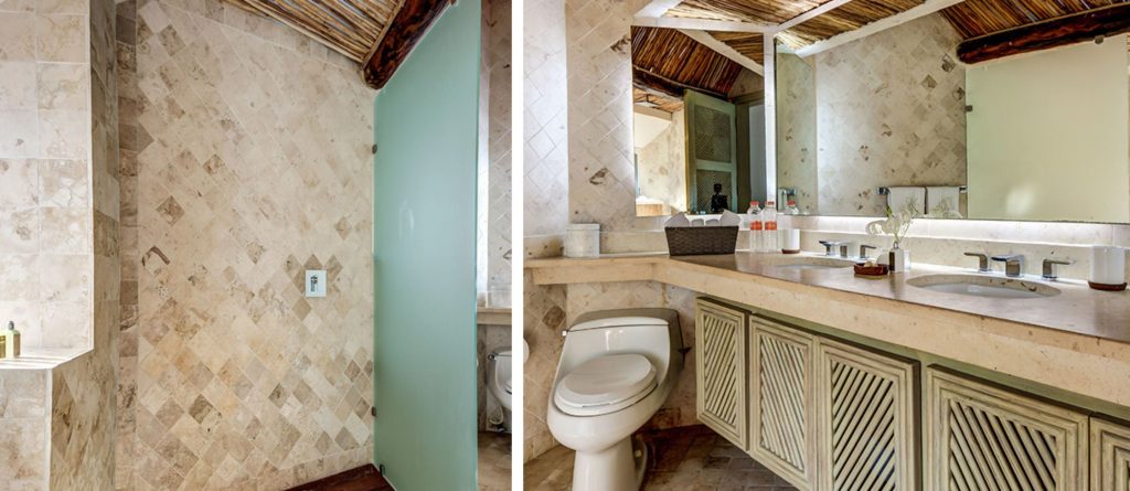 The serene surroundings of Villa Playa invite you to leave the fast-paced world behind and embrace a slower pace. The beauty and tranquillity are unmatched, with many spots to read a book or simply enjoy the fresh air and stunning ocean views. An upper terrace with round sofas is perfect for cocktails and conversation, overlooking the tropical oasis. You’ll spend hours in the infinity-edge swimming pool and evenings in the Jacuzzi. Shady palapas house hammocks, comfy lounge beds, and a dining table that makes you feel like you’re dining on the beach. (Note: While the beach is sandy, the water access is rocky. Water shoes are provided, and other parts of the bay are perfect for swimming.)